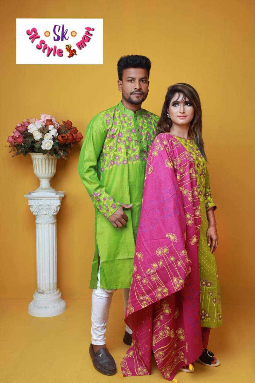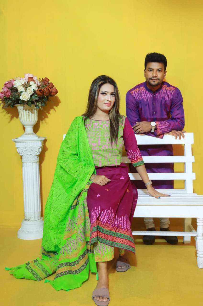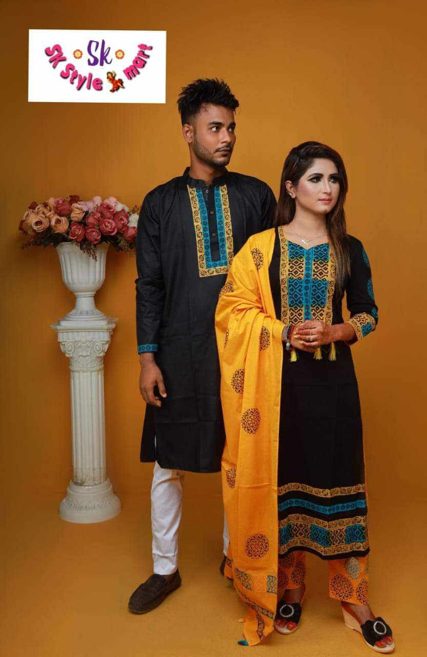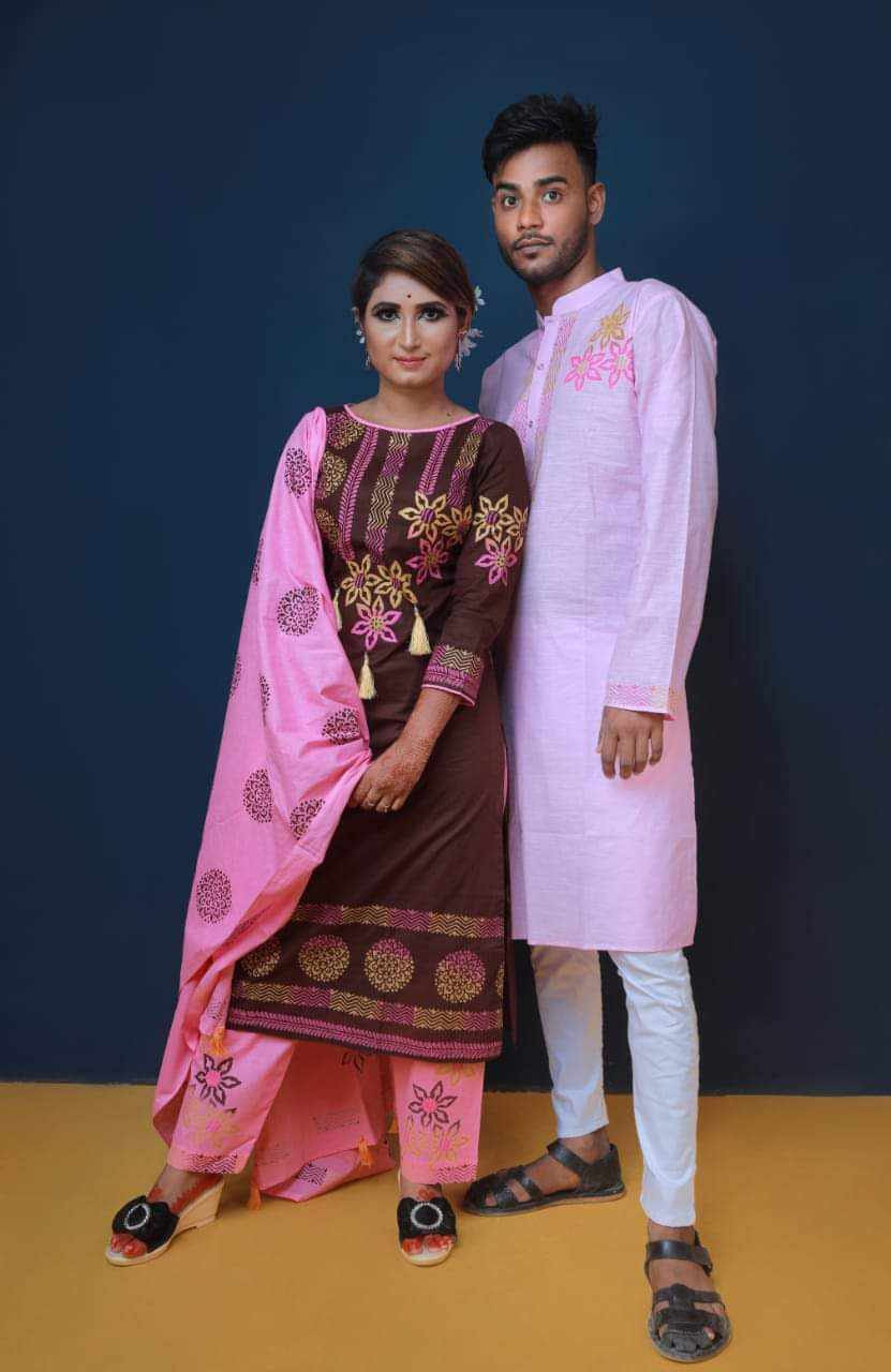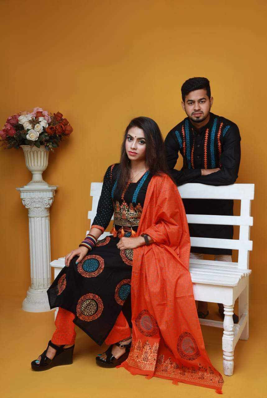 SKU Handprint cotton Punjabi & Selwar Kamiz With Orna (Couple Set)