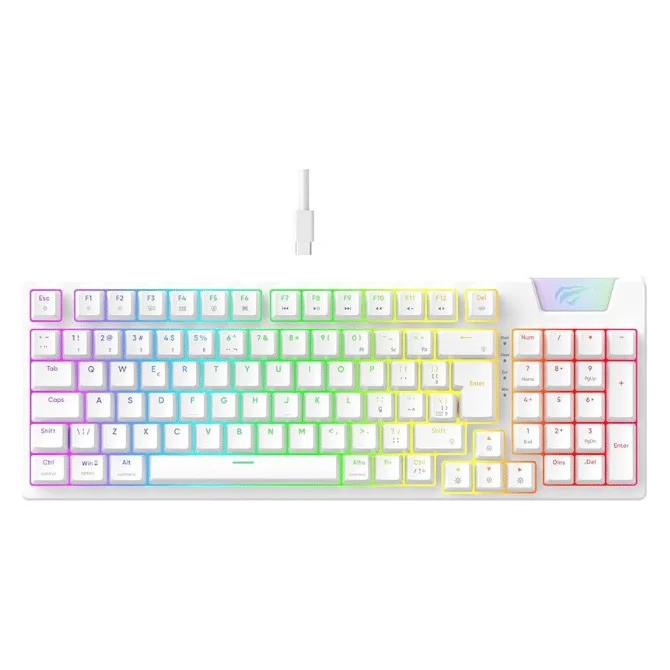 The Havit KB885L Gamenote stands out as a top-tier mechanical keyboard, meticulously crafted for gaming enthusiasts and professionals alike. Its sleek and ergonomic design is complemented by advanced features that elevate the gaming experience. Sporting a USB Type-C interface, the keyboard ensures a reliable and high-speed connection, minimizing latency during intense gaming sessions. The RGB backlighting adds a customizable and visually immersive touch to the keyboard, allowing users to personalize lighting effects according to their preferences. With a remarkable key life of 50,000,000 times, each key on the Havit KB885L is built to withstand extensive use, guaranteeing long-lasting durability. The inclusion of Content Red switches further enhances its gaming prowess, offering a linear and smooth keystroke experience known for quick response times and precise actuation. Whether you're a professional gamer or simply seeking a high-quality typing experience, the Havit KB885L Gamenote is a standout choice that combines performance, style, and durability to enhance your computing and gaming setup.