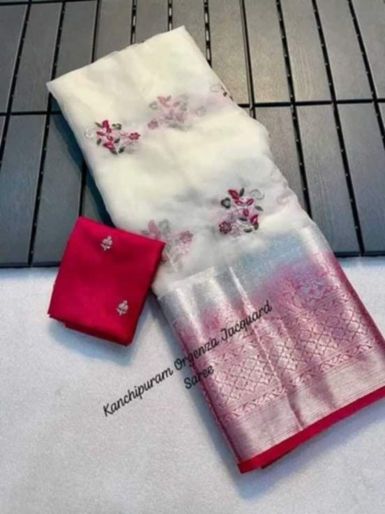 Kanchipuram Organza Jacquard Saree Multi Sequence Embroidery Work with Raw Silk Sequence Blouse
