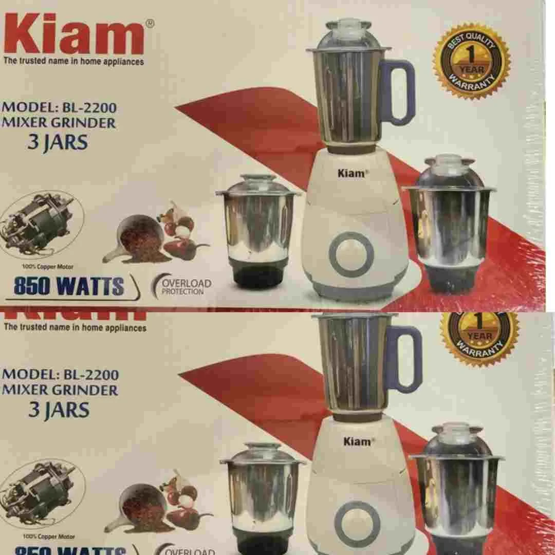 Introducing the Kiam Mixer Grinder BL-2200, a powerful 850-watt appliance that will revolutionize your food preparation experience. With its sleek design and durable build, this mixer grinder is perfect for any home kitchen. The BL-2200 model is equipped with a high-performance motor that can easily handle even the toughest ingredients. Whether you're grinding spices, making chutneys, or blending smoothies, this mixer grinder is up to the task. Its compact size makes it easy to store, while its multiple jars and blades provide versatility in your cooking. Upgrade your kitchen with the Kiam Mixer Grinder BL-2200 today!