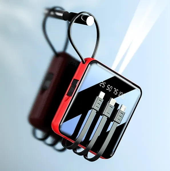 Mini Portable Charger 20000Mah Charging Power Banks Fast Charging Built-in 4 Cable Input: Type C and MicroPower Capacity: 20000-Mah Colors: Black, Pink, Purple Feature: 2.1A fast charging 10W fast charging, the phone is quickly fully charged. Large screen digital display Grasp the power of the charging treasure Strong LED Lights It comes with dual LED lights to illuminate the night. ???????? For the new Powerbanks: ?????? ????? ?????? ??? ??????? ????? ????? ????????? ??. ???? ??? ??. Fast Charging: This has an incredible value with 2 inputs and 4 outputs. Can be used with various electronic devices Portable design, very convenient and easy to use Flashlight for emergency The screen shows the energy state of the power bank.