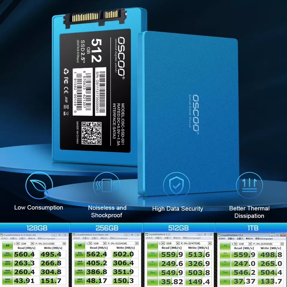 OSCOO SSD High Speed 2.5 Inch Internal Solid State Disk Hard Drive SATA3 For Laptop and Desktops Matal Body