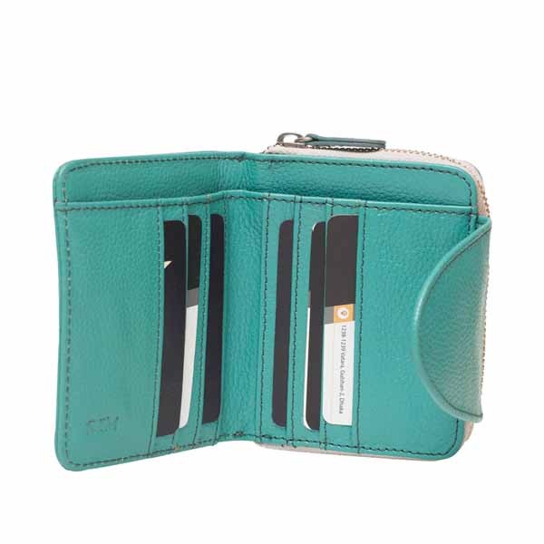 Interior details: 6 pockets for credit cards, 2 large compartments for cash, 2 additional pockets for receipts.