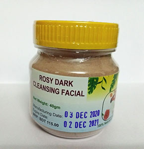 রোজি ডার্ক কিনজিং ফেসিয়াল প্যাকটি সামান্য পানির সাথে মিশিয়ে পেষ্ট তৈরি করে মুখে লাগিয়ে ১০ থেকে ১৫ মিনিট পর ভালো করে মুখ ধুয়ে নিন। এই মিশ্রনটি আপনার ত্বকের নমনীয়তা বজায় রাখবে এবং মুখের ময়লাকে গভীর থেকে দূর করবে।