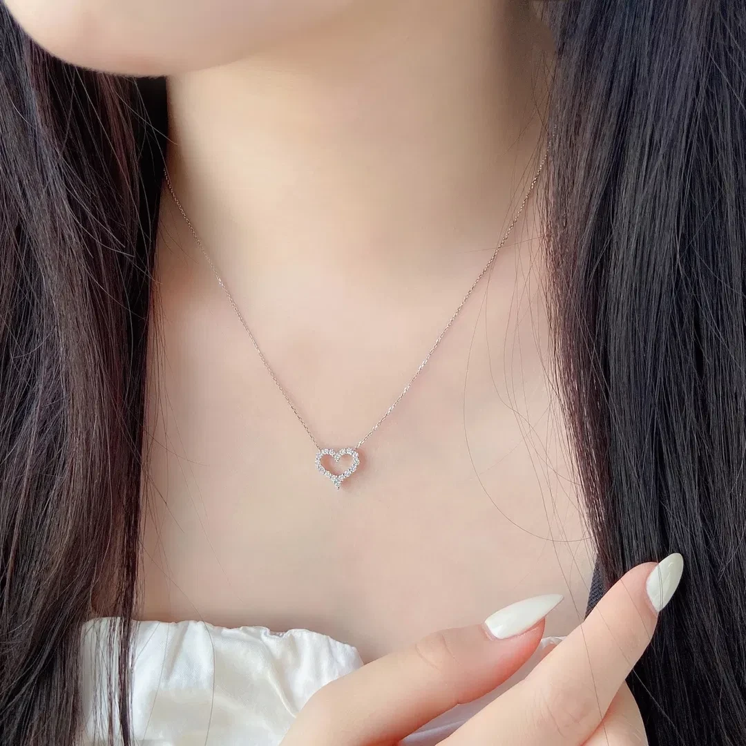 Sweet Peach Heart Love-Shaped Pendant Necklace – Cute Short Clavicle Chain
