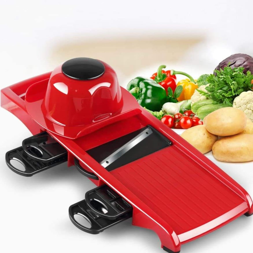 6 in 1 Vegetable Slicer,Multi Function Mandoline Slicer and Vegetable Grater,Chopper,Julienne Peeler With Safety Hat