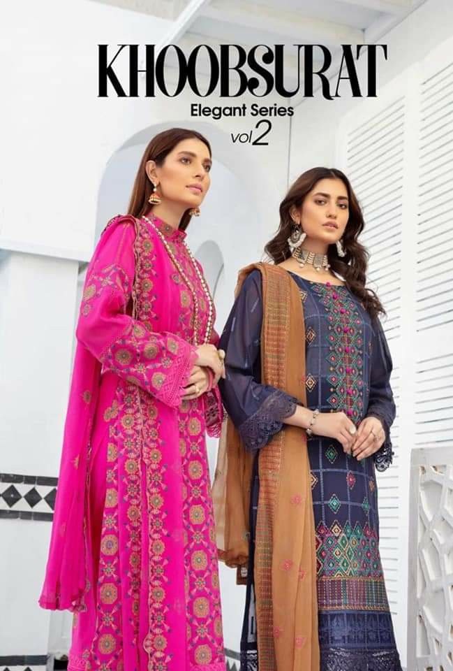 Pakistani Khubsurat Unstitched & Dupatta Embroidered Dress for Women.