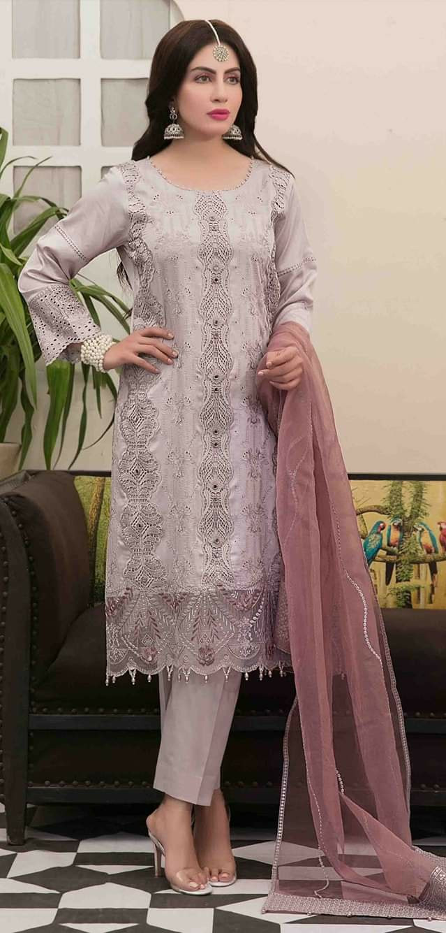Exclusive Semi-Stitched Fancy Heavy Embroidered Cotton Satin Shirt with Accessories