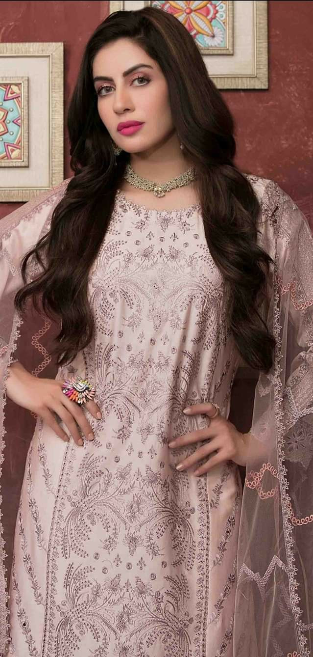Exclusive Semi-Stitched Fancy Heavy Embroidered Cotton Satin Shirt with Accessories