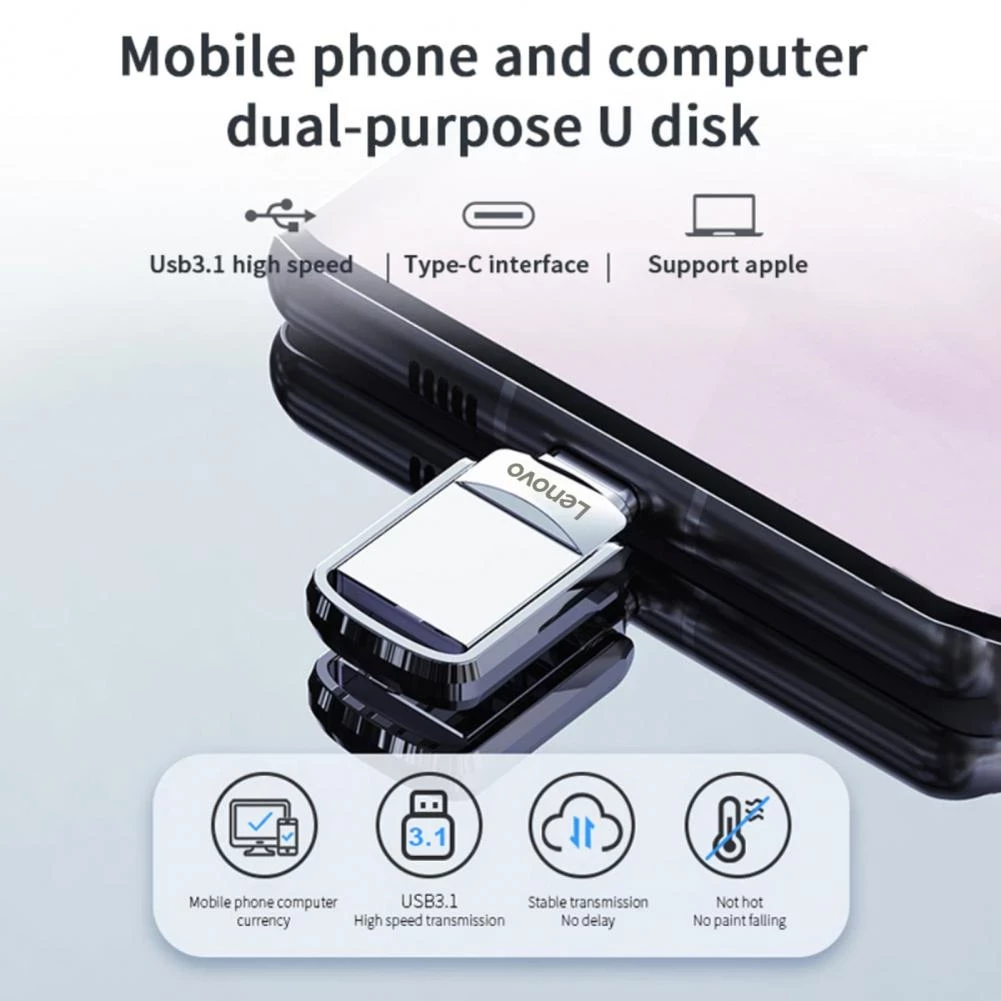 Lenovo USB Disk 2TB Portable Drive Type-C Drive Device Metal Flash Drives Flash Drive Computer Accessories
