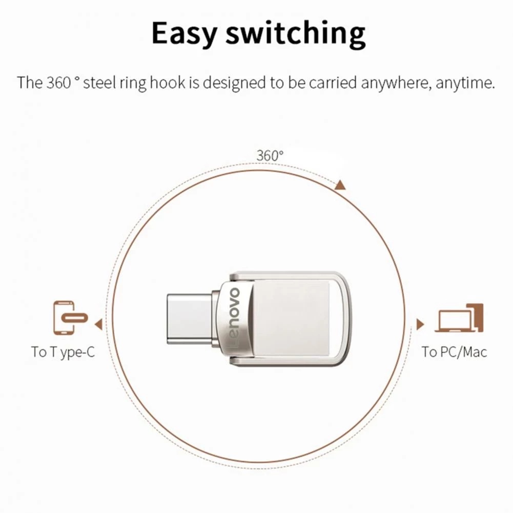 Lenovo USB Disk 2TB Portable Drive USB 3.0 and Type-C Drive Device Metal Flash Drives Flash Drive Computer Accessories