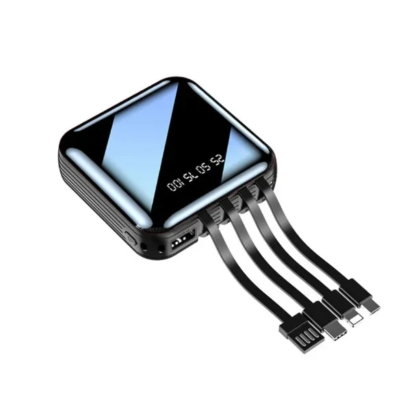 Mini Portable Charger 20000Mah Charging Power Banks Fast Charging Built-in 4 Cable Input: Type C and MicroPower Capacity: 20000-Mah Colors: Black, Pink, Purple Feature: 2.1A fast charging 10W fast charging, the phone is quickly fully charged. Large screen digital display Grasp the power of the charging treasure Strong LED Lights It comes with dual LED lights to illuminate the night. ???????? For the new Powerbanks: ?????? ????? ?????? ??? ??????? ????? ????? ????????? ??. ???? ??? ??. Fast Charging: This has an incredible value with 2 inputs and 4 outputs. Can be used with various electronic devices Portable design, very convenient and easy to use Flashlight for emergency The screen shows the energy state of the power bank.