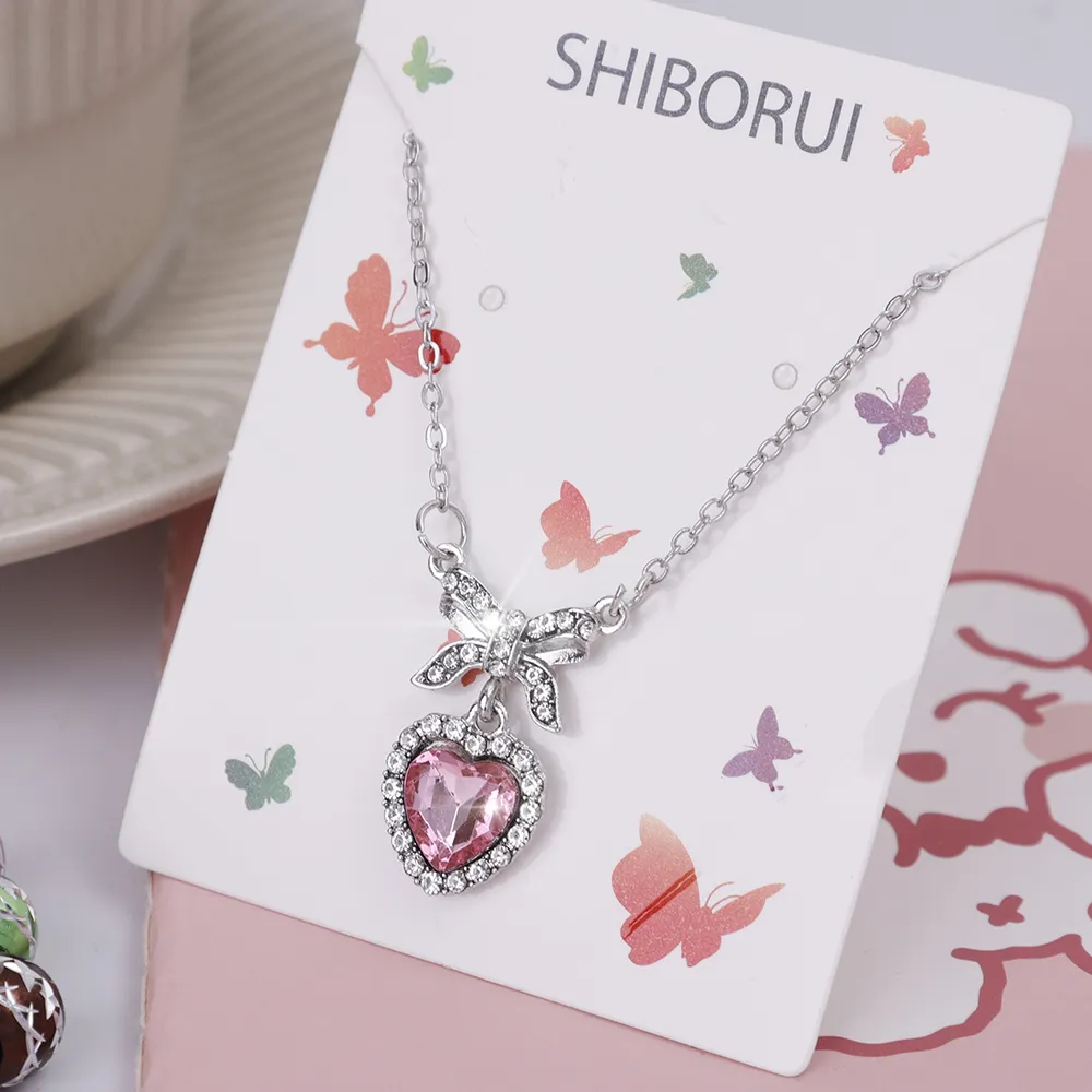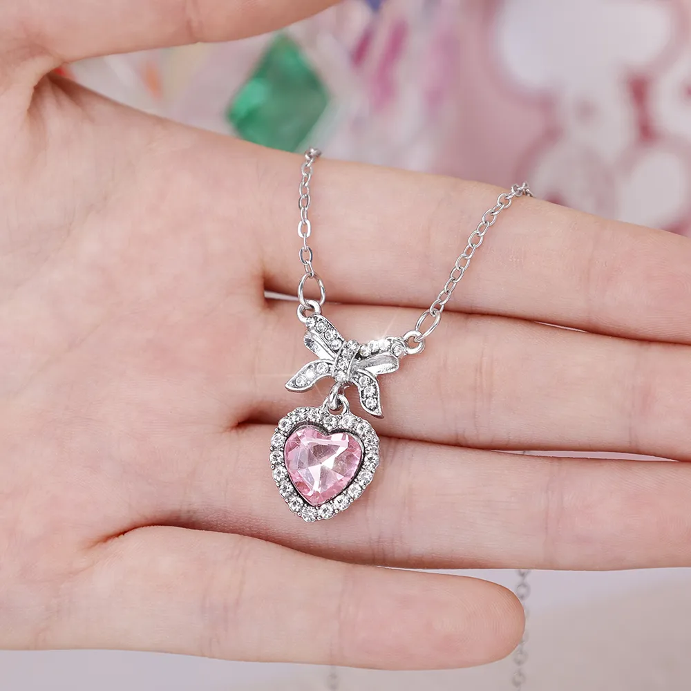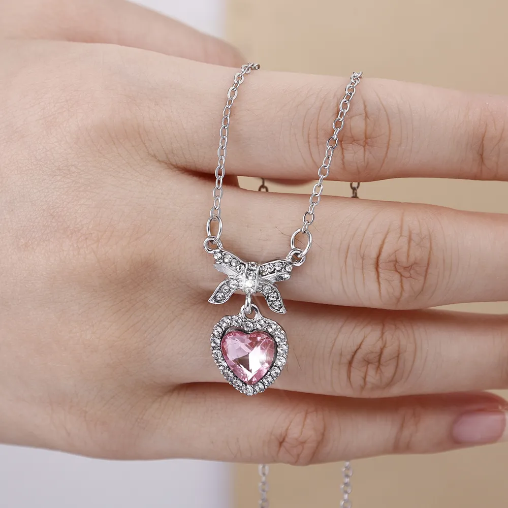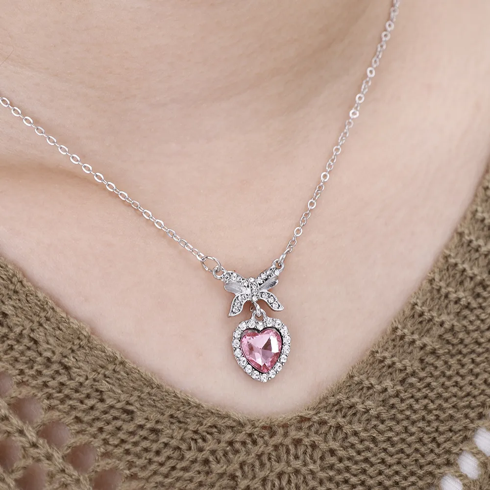 এই Crystal Zircon Bowknot Heart Pendant