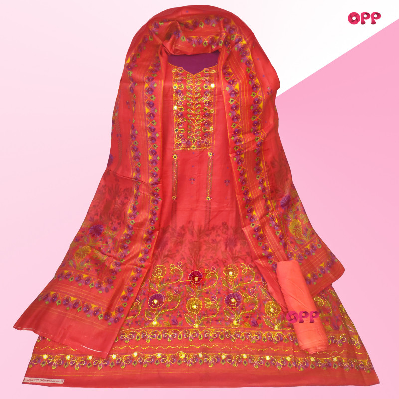 Rajsthani Ari Dollar Work With Embroidery Three Piece, Colorful Dopatta. Very Gorgeous Cotton Collection.