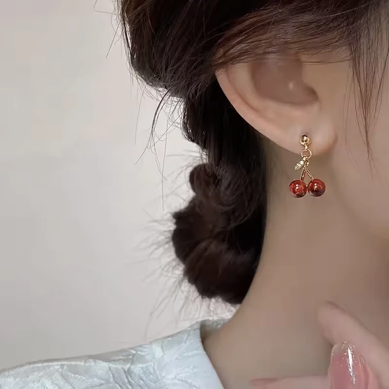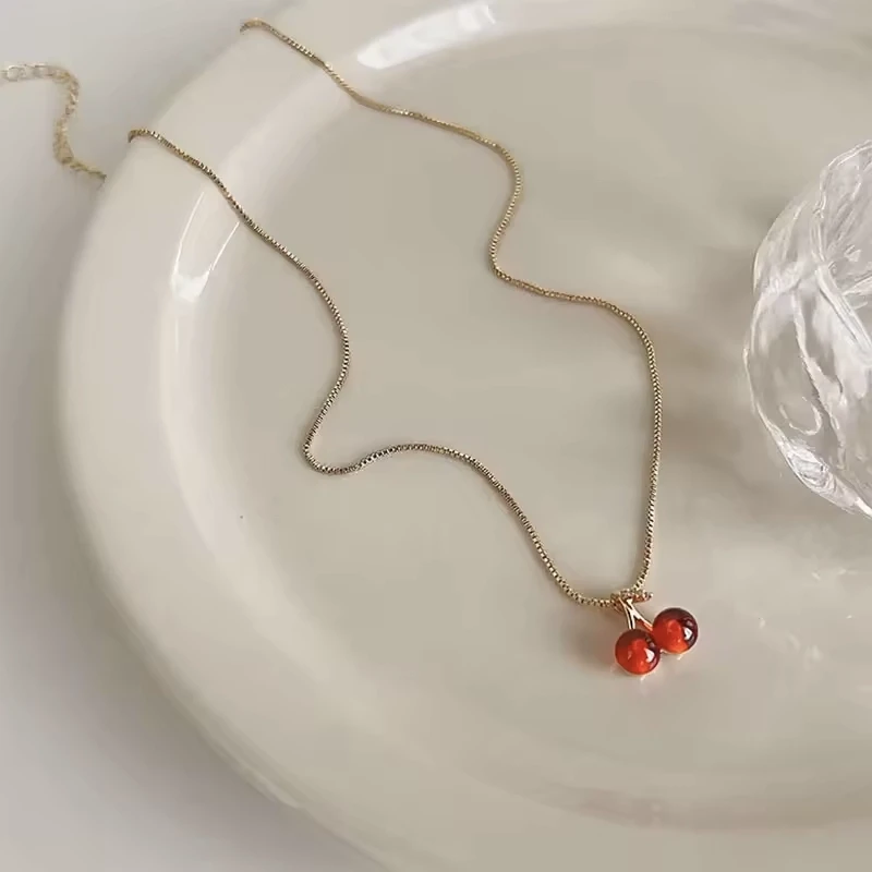 Red Cherry Gold Pendant Necklace & Earrings Set – Stylish Jewelry for Women, Perfect for Weddings & Birthdays